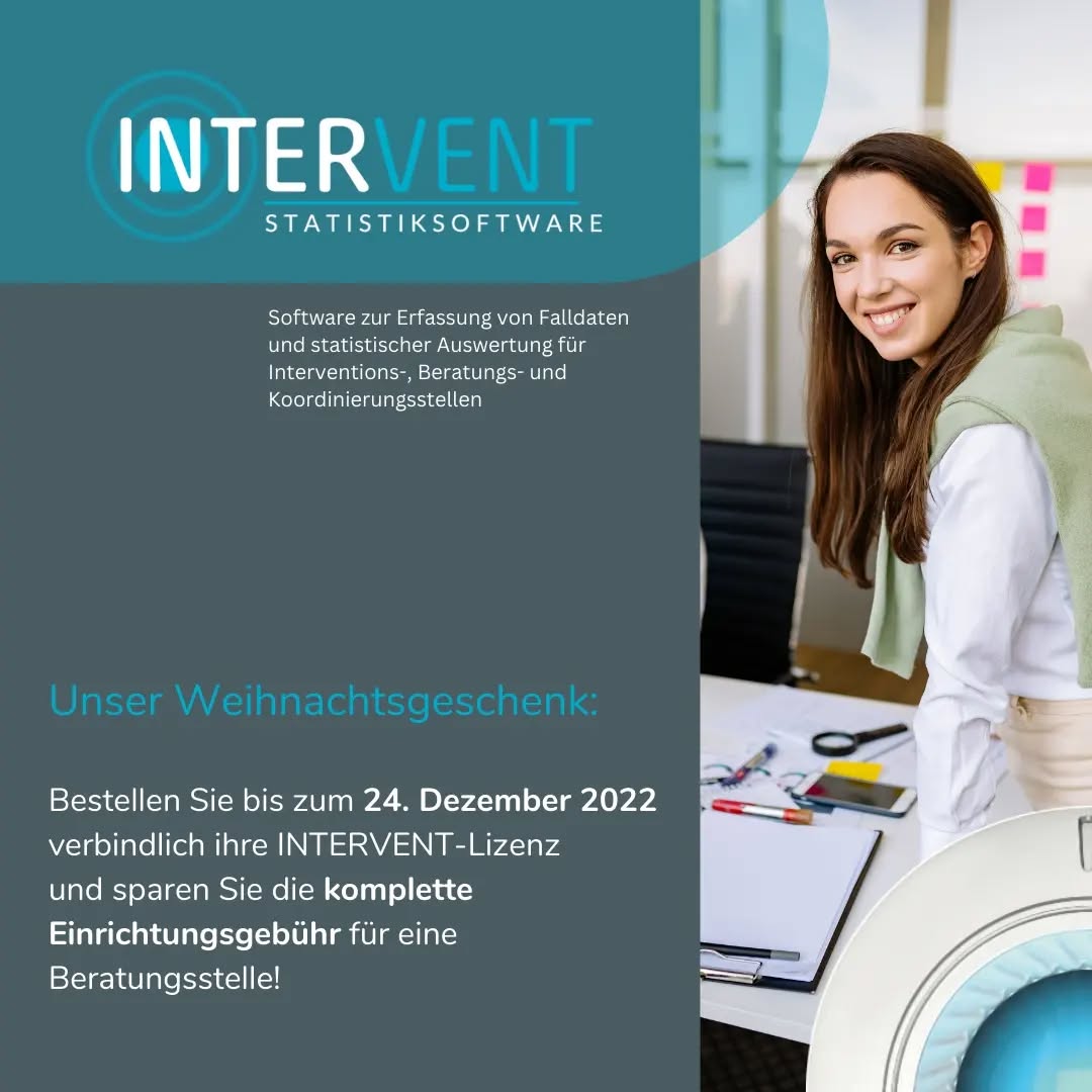 Bestellen Sie bis zum 24. Dezember 2022 verbindlich ihre INTERVENT-Lizenz und sparen Sie die komplette Einrichtungsgebühr für eine Beratungsstelle!